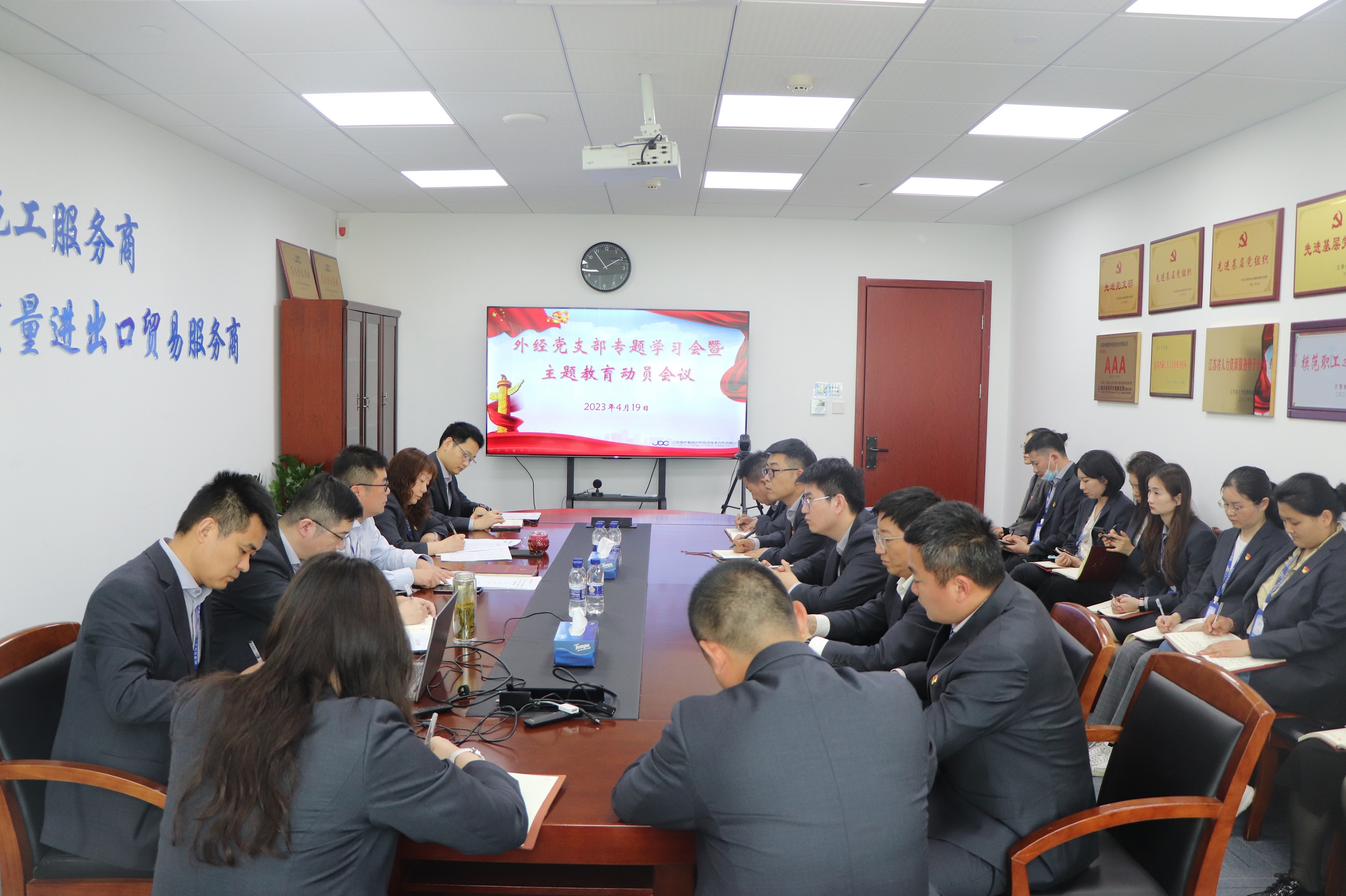 4月19日,外经党支部召开党员专题学习会暨主题教育动员会议,深入学习贯彻习近平总书记重要讲话精神,贯彻落实上级工作部署。公司全体党员参加会议。