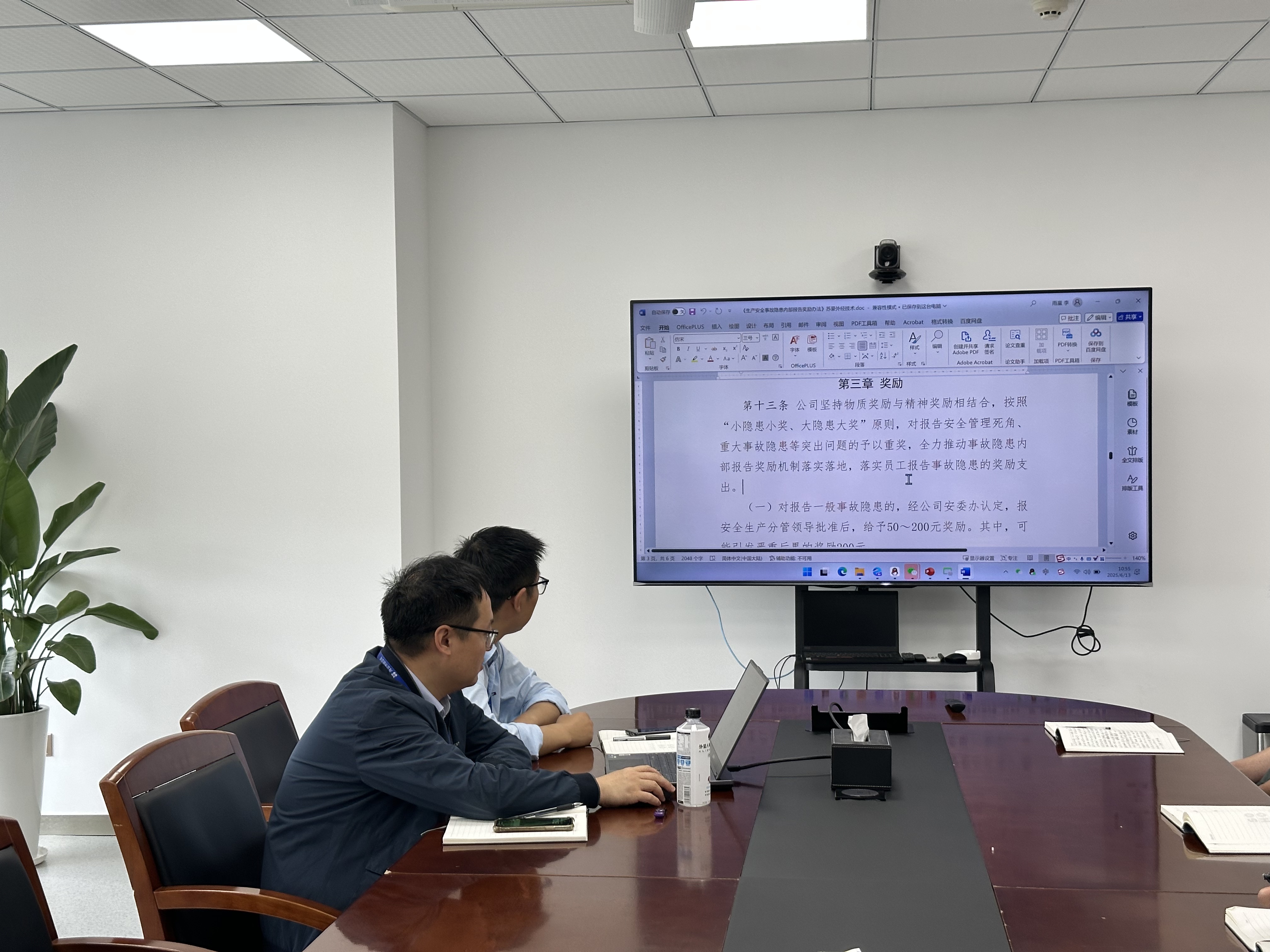 6月13日,公司举办2025年6月第2期 总第115期“建工学堂”,本期学堂聚焦三项重点内容:一是开展《房屋市政工程生产安全重大事故隐患判定标准(2024版)》专题学习及生产安全事故警示教育片观看;二是开展苏豪外经技术公司《生产安全事故隐患内部报告奖励办法》专题学习;三是安全生产月办公场所消防安全检查。工程板块全体管理人员参与此次学习研讨。