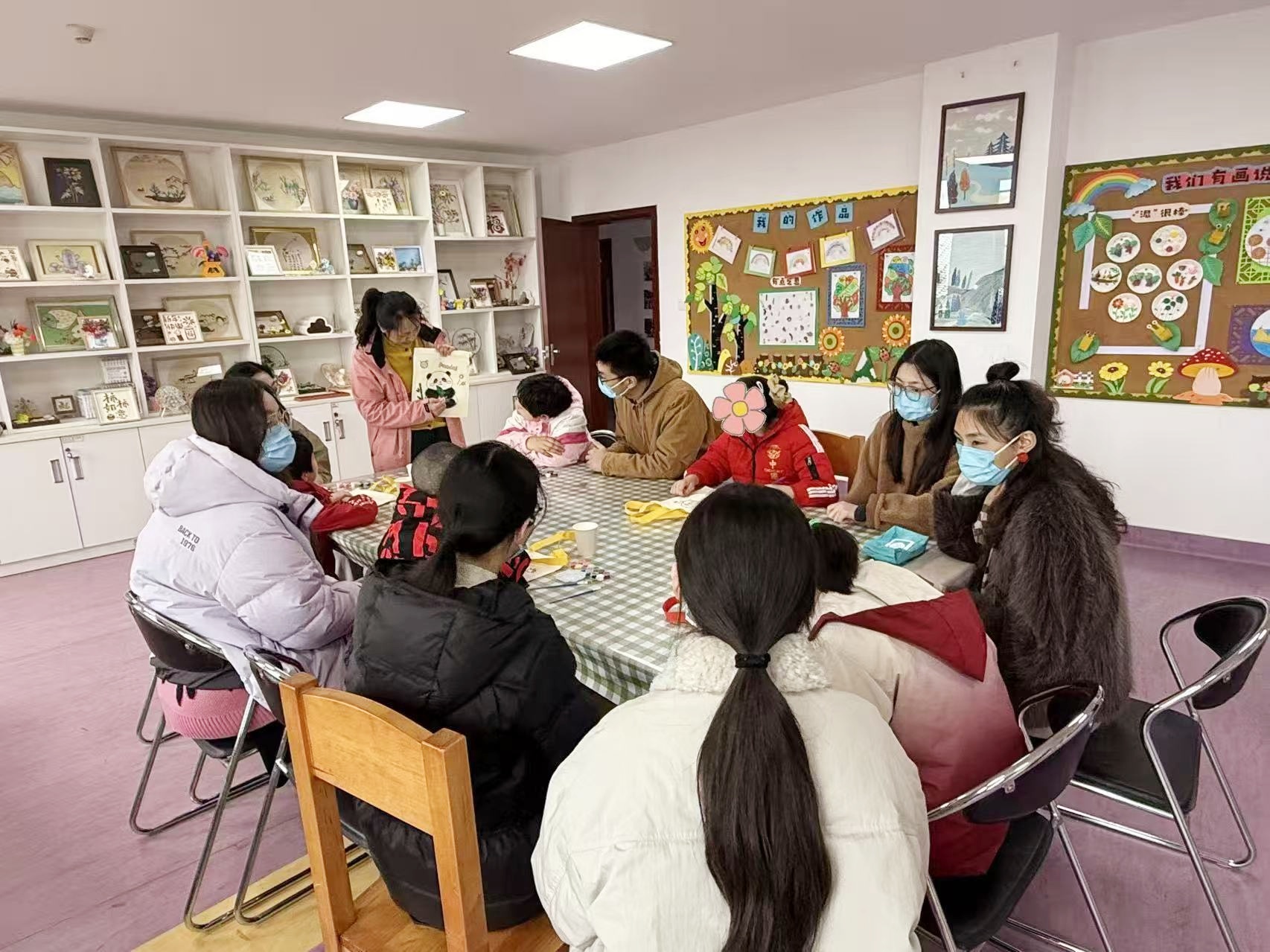 活动中,志愿者们在福利院工作人员引导下参观院区,了解孩子们的生活学习情况,随后与孩子们分组结对,共同完成帆布包涂色创作。创作过程中,孩子们充分释放想象力,大胆描绘心中所想;志愿者在一旁耐心指导、亲切交流,与孩子们共享创作乐趣。完成后,孩子们踊跃展示作品,介绍画作内容与选色缘由,志愿者给予真诚赞美与鼓励。